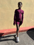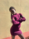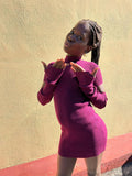 Abito in lana a costine con collo a lupetto e manicotti, tessuto morbido e molto elasticizzato e log ometallico oro al collo