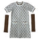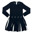 Abito in misto viscosa giro collo a maniche lunghe con sotto plissè bicolore con logo a contrasto al collo e ai polsi