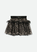 Gonna in morbido tulle tutto a fantasia maculata con dettagli lurex e bustino completamente elastico