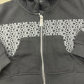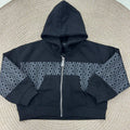 Felpa garzata full zip con cappuccio, stampa in tuìinta multi loghi sul davanti e sulle maniche, polsini ed elastico sul fondo