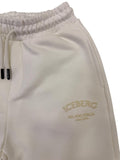 Pantalone in tessuto felpato con bustino completamente elastico e laccetto regolabile, tasche a filo, elastico alle caviglie e logo stampato in tinta effetto velluto