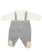 Bavetta in piquet di cotone con ricamo due coniglietti e profilo a contrasto, chiusura con bottoncino metallico