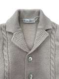Cardigan in morbida e calda lana lavorato a trecce, chiusura con bottoni in madreperla