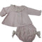 Set due pezzi composto da cappello e muffole in cotone con smerlino a contrasto