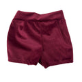 Completo due pezzi composto da camica con collo a punta e bottoncini decorativi in madre perla con apertura dietro e short in velluto liscio con elastico in vita