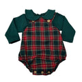 Salopette in tessuto tartan con bottoncini in legno e body in caldo cotone a maniche lunghe con collo a polo