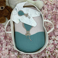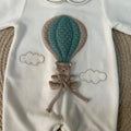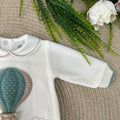 Tutina in morbida e calda cinigia con applicazione in lana davanti mongolfiera e orsetto