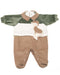 Pagliaccetto effetto salopette in ciniglia liscia e ciniglia a costine, collo a punta con profilo a contrasto ed orsetto ricamato al centro