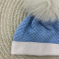 Cappello in pura lana con risvolto a contrasto e maxi pom pon in pelliccia di volpe