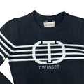 Abito giro collo a maniche lunghe in misto viscosa, aderente con righe a contrasto davanti e sulle maniche e logo di brillantini