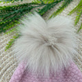 Cappello in lana con risvolto a contrasto e maxi po pon in pelliccia di volpe