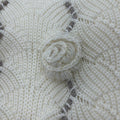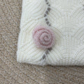 Scialletto in pura lana interamente lavorato e con bordo smerlato, roselline in lana in rilievo al centro