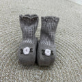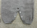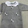 Tutina in pura lana 100% MADE in Italy con fiorellini in rilievo ricamati, collo in cotone smerlato a contrasto, aperture dietro e all'interno della gambe con babbucce in lana coordinate con fiori in rilievo ricamati