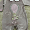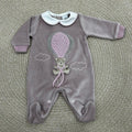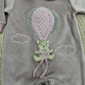 Tutina in morbida e calda ciniglia con applicazione centrale mongolfiera e orsetto, apertura dietro e all'interno gambe