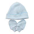 Set due pezzi composto da cappello e muffole in cotone con smerlino a contrasto