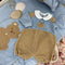 Tutina giro collo in caldo cotone con logo ed orsetto stampati davanti, apertura dietro e all'interno gambe