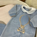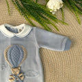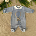 Tutina in morbida e calda ciniglia con applicazione centrale in lana mongolfiera con orsetto