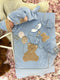 Tutina in morbida e calda ciniglia con orsetto in tessuto teddy davanti e palloncini e piedini fantasia vichy
