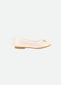 Ballerine completamente lurex con laccetto in gros grain removibile da poter allacciare alle caviglie, fiocchetto e cuore logo oro