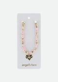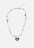 Collanina di perline e cuoricini con ciondolo a forma di fiocco