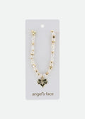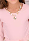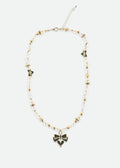 Collanina di perline e cuoricini con ciondolo a forma di fiocco