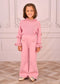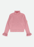 Mglioncino in lanetta a costine con fiocco sulla manica e rouche al collo ed ai polsi