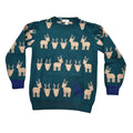 Maglione in pura lana giro collo tutto fantasia renne e polsini a contrasto