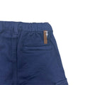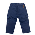 Pantalone cargo in gabardine, bustino completamente elastico con laccetto interno regolabile, tasche a filo e tasche laterali imoreziosite da bottoni a contrasto