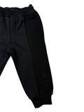 Pantalone in tessuto felpato con bustino completamente elastico, banda laterale in punto Milano con logo ricamato in tinta sul fondo gamba, elastico alle caviglie