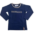 T-shirt in cotone giro collo con righe a contrasto al collo e maxi logo ricamato davanti