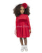 Salopette modello culotte in tessuto tartan con bretelle regolabili e camicia con collo coreano e bottoncini in legno