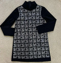 Abito a maniche lunghe con collo a lupetto in tessuto dddddddddi punto milanno con il davaanti tuutto tempestato di strass che formano i loghi