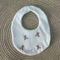 Bavetta in ciniglia con orsetti e logo ricamati, chiusura con bottone metallico
