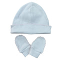Set due pezzi composto da cappello e muffole in cotone con smerlino a contrasto