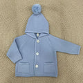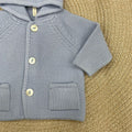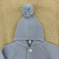 Cappuccio con pom pon in lana e piccole tasche sul davanti
