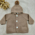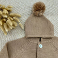 Cappotto in pura lana 100% con cappuccio e pom pon in lana all'estremità.