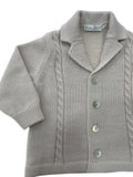Cardigan in morbida e calda lana lavorato a trecce, chiusura con bottoni in madreperla