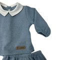 Completo due pezzi in caldo cotone a costine con colletto a punta in cotone e culotte in caldo cotone a costine con bottoncini in legno