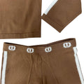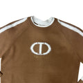 Completo in misto viscosa composto da maglione crop ampio con bande sulla maniche e logo davanti e pantalone ampio con loghi sul bustino elastico