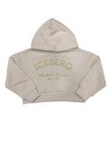 Felpa crop in tessuto felpato con cappuccio e polsini, stampa logo in tinta effetto velluto