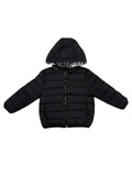 Giubbotto in nylon reversibile con cappuccio non staccabile, da un lato tutto logato e dall'altro tinta unita con logo ricamato in tinta in petto