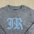 Maglioncino in lana con bottoncini al collo e logo celeste davanti