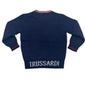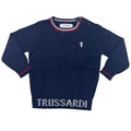 Maglioncino in misto viscosa giro collo con logo a contrasto sul fondo davanti e dietro, righe a contrasto al collo ed ai polsi
