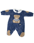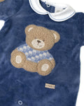 Tutina in ciniglia con applicazione orsetto teddy sul davanti, colletto tondo con impuntura a contrasto