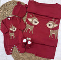 Set nascita in pura lana 100% Made in Italy composto da scialletto con doppia applicazione centrale cerbiatti, tutina giro collo con cerbiatto al centro con apertura dietro e all'interno gambe, cappellino con orecchie e babbucce con fiocchettini
