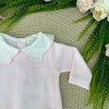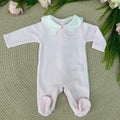 Tutina in morbida e calda ciniglia con collettone in battista con orsetti ricamati e logo ricamato in petto