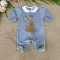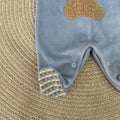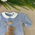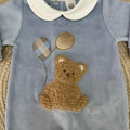 Tutina in morbida e calda ciniglia con orsetto in tessuto teddy davanti e palloncini e piedini fantasia vichy